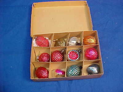 12-1930s GERMAN Blown GLASS MINIATURE Christmas TREE ORNAMENTS in Orig Box