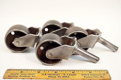 ANTIQUE CASTERS, Vtg Cast Iron Metal Industrial Furniture Factory Cart Wheel Set
