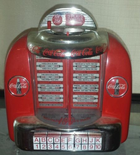 Title (ebay affiliate link): Enesco Collectible Coca-Cola Die Cast Tabletop Jukebox Musical Bank (1996)