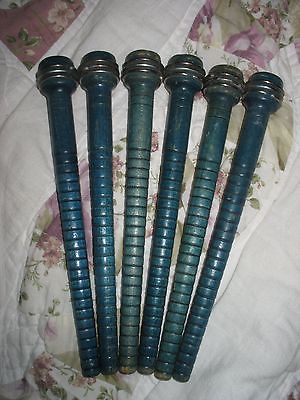 Antique Vintage Wooden Blue Textile Bobbins/Spools (Lot of 6)
