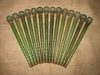 Antique Vintage Wooden Green Textile Bobbins/Spools (Lot of 14)