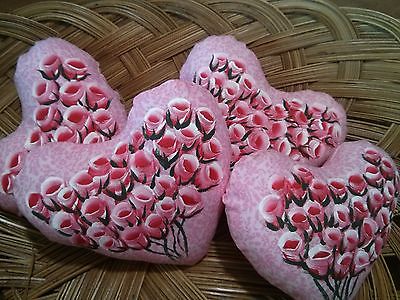 4 Ornie Bowl Filler ornaments, Handmade Pink Hearts painted w/ Pink Roses #49