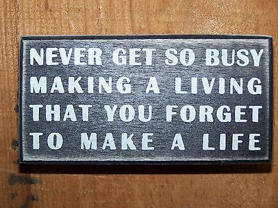 Title (ebay affiliate link): " NEVER GET SO BUSY MAKING A LIVING THAT YOU.... " Wood Sign Primitives by Kathy