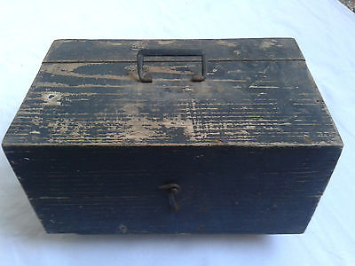 VINTAGE OLD PAINTED ORIGINAL WOOD ANTIQUE RUSTIC CHEST TOOL STORAGE BOX