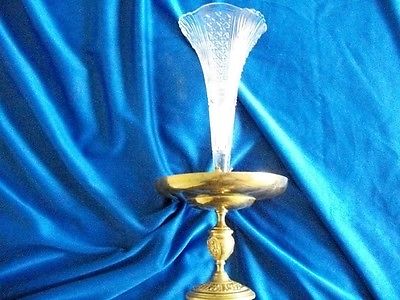 ANTIQUE FRENCH GLASS EPERGNE WITH BRASS STAND 14" TALL AND IMPRESSIVE!