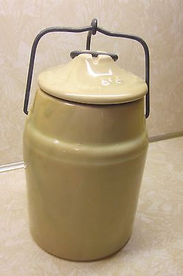 VINTAGE " WEIR" PALE GREEN LIDDED STONEWARE JAR 7" TALL