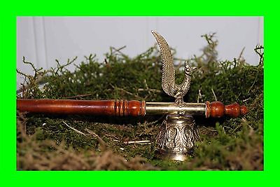 Brass Vintage Candle Snuffer, Rooster motif, wooden handle, 35cm / 13.7 in long