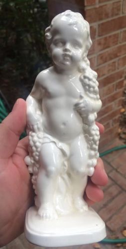 Antique Germany Porcelain Putti Cherub Figurine Statue W/ Grapes