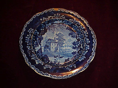 ANTIQUE FLOW BLUE STAFFORDSHIRE SCENIC TRANSFER PLATE ADAMS 1820's