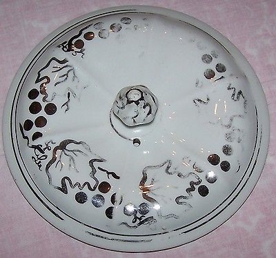 OLD UNMARKED PORCELAIN POT BOWL JAR LID ONLY WHITE SILVER