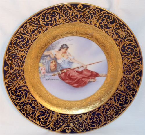 Title (ebay affiliate link): Bavaria Portrait Plate with Melopomene Cobalt Blue Gold Overlay Hand Painted