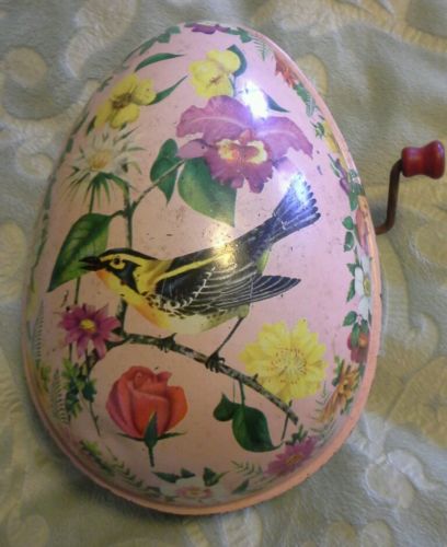 Vintage 1953 Tin Metal Mattel #513 Easter Egg Hand Crank Wind Up Musical Toy