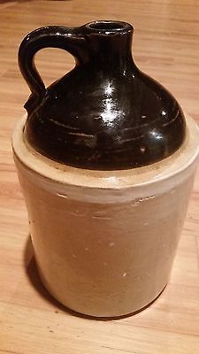 OLD VINTAGE ANTIQUE GLAZED STONEWARE CROCK, WHISKEY JUG HANDLED 2 QT