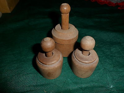 GROUP OF 3 ANTIQUE MINIATURE WOODEN BUTTER PRESSES / MOLD