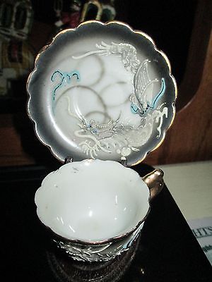 Demi Mini Porcelain Teacup set with wood stand Black/Blue Dragon design Japan