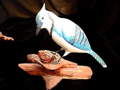 Rare American HP Folk Art Bird Decoy Blue Jay Wood Carving by Yerkes NO RESERVE