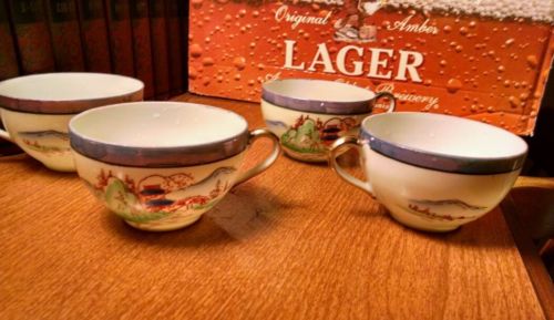 Vintage Chikaramachi bone china handpainted 4 piece tea cup set