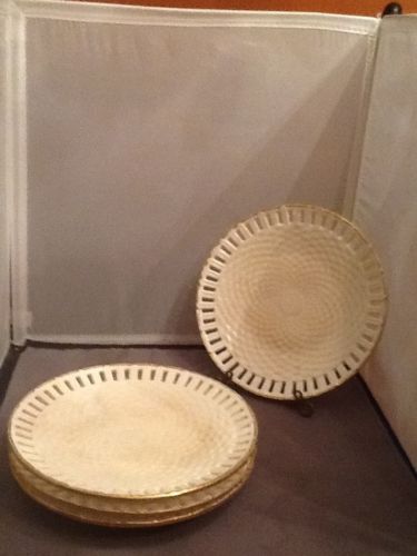 Title (ebay affiliate link): 19th C Antique Creamware Basket Weave Reticulated Porcelain Plate Gold Rim 4 Lot
