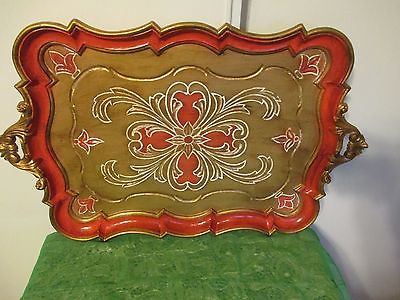 Vintage Italian Florentine Gilt Wood Tole Tray 23"x 13" Orange/Cream/Gold