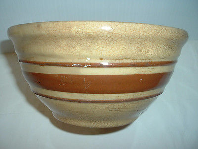 ANTIQUE YELLOW WARE STONEWARE BROWN BANDED BOWL USA Oven Proof 6"