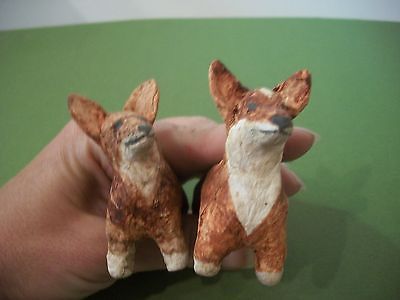 OLD VINTAGE FOLK ART SPUN COTTON 2 BABY WELSH CORGY DOG CHRISTMAS ORNAMENTS