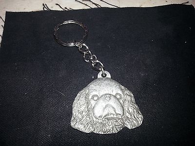 VINTAGE EARLY 1980'S RAWCLIFFE PEWTER ENGLISH TOY SPANIEL DOG KEY CHAIN MINT