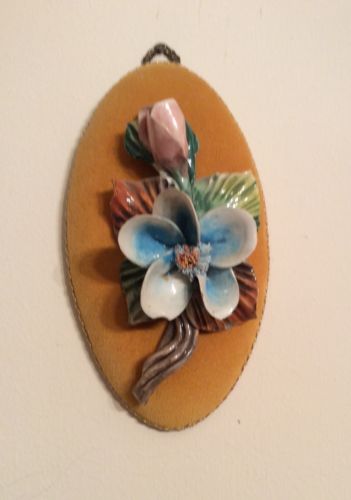 Title (ebay affiliate link): CAPODIMONTE PORCELAIN FLOWERS ON VELVET. WALL HANGING, MADE IN ITALY CERAMIC.