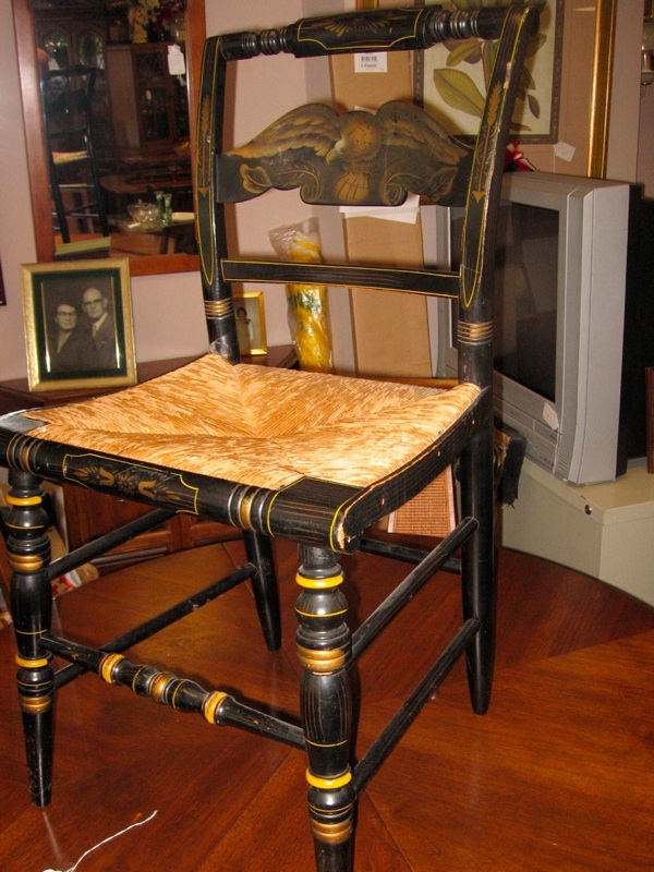 EARLY HITCHCOCK CHAIR W/ RUSH SEAT - BLACK