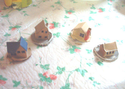 Title (ebay affiliate link): LOT 4 OLD VINTAGE CARDBOARD CHRISTMAS HOUSES ROUND BASES HOLE BOTTOM FOR LIGHT