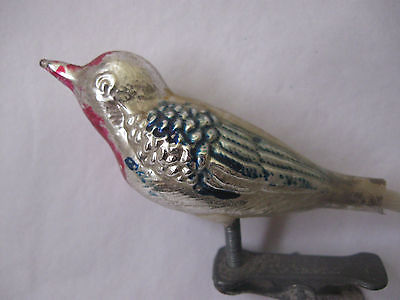 Vintage Christmas Tree Ornament Mercury Glass Clip on Bird With Spun Glass Tail