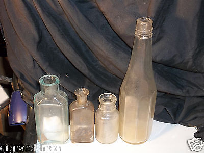 ot of 4 Antique Vintage Bottles Jars Apothecary Soda Beer Medicine Bitters L & S