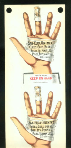 Title (ebay affiliate link): c1905-1910 SAN-CURA OINTMENT PAPER SIGN, Apothecary, NR