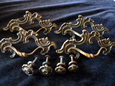 Title (ebay affiliate link): 4 Antique Furniture Drawer Pulls & 4 Drawer Knobs Brass
