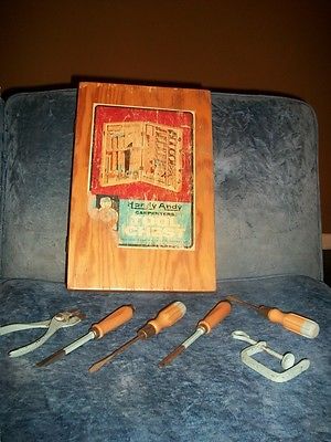 Vintage 1950's 1960's Handy Andy Carpenters Wood Tool Chest w Tools Toy