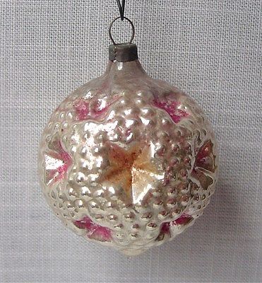 Title (ebay affiliate link): SILVER BALL WITH STAR INDENTS GLASS FEATHER TREE ORNAMENT, GERMAN, vintage.