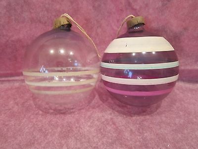Vtg.~2 War Era Ball Shape Ornament~Paper Cap~Unsilvered Stripe Feather Tree~Xmas