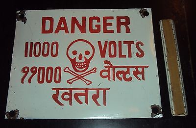 Vintage Advertising Porcelain Enamel Sign DANGER 11000 VOLTS RARE