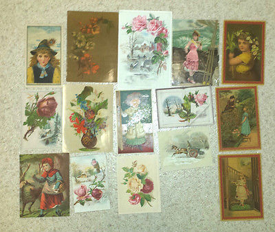 Lot of Victorian Scrap paper cards 15 pcs LARGE flowers children winter