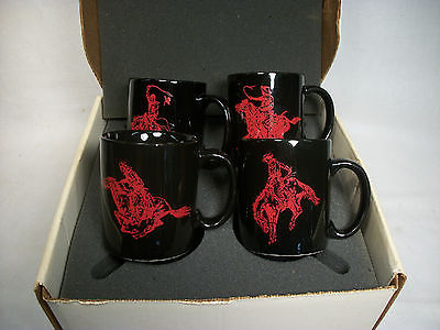 4 MARLBORO CIGARETTE BLACK & RED COFFEE MUGS/CUPS ADVERTISING WESTERN HORSE