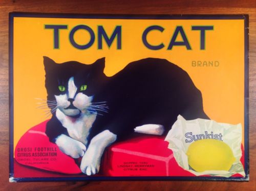 Original,Early, Sunkist Tom Cat, Orosi Foothill California Lemon Crate Label