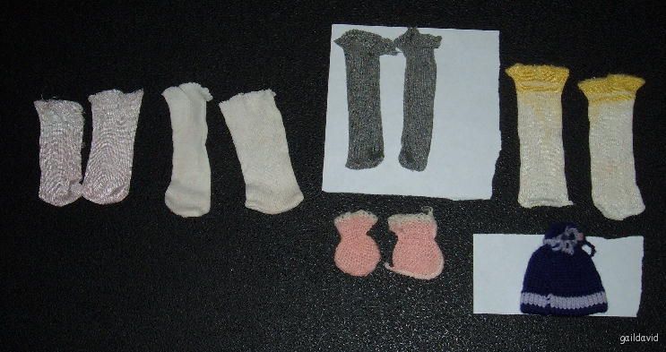 Antique Vtg Doll 4 Pair Socks + Booties Hat Estate Lot