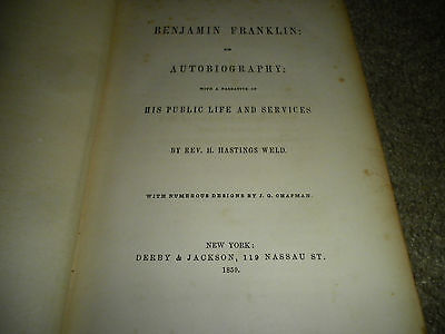 Title (ebay affiliate link): Antique Book Benjamin Franklin Autobiography by Rev H. Hasting Weld 1859