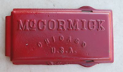 VINTAGE MCCORMICK HORSE DRAWN HAY MOVER CAST IRON TOOL BOX COVER ADVERTISING