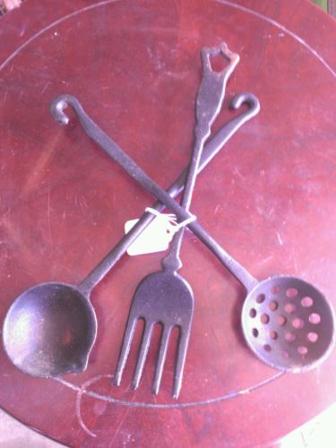 Title (ebay affiliate link): VINTAGE Black Cast Iron Utensil Set Spoon Fork Strainer, 11 inches