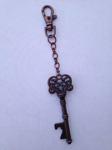 New Copper Chain Antique Skeleton Key Bottle Opener Keychain Clip