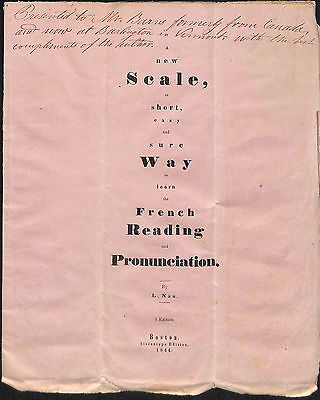 1844 Boston, Louis Nau, Rare Stereotype Book - A New Scale..Easy Learn French...