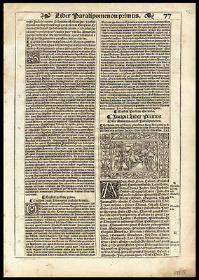 Title (ebay affiliate link): 475 Yr Old Bible Leaf Old Testament Chronicles Woodcut History Adam Abraham