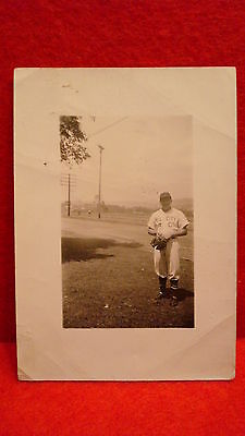 OIL CITY, PA. "YOUNG BASEBALL PLAYER IN UNIFORM" HAT & GLOVE *SMALL PHOTOGRAPH*