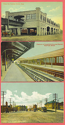 Forest Hills Boston THREE 1907-20, MTA Station, Trollies, Antique Cards, Unused