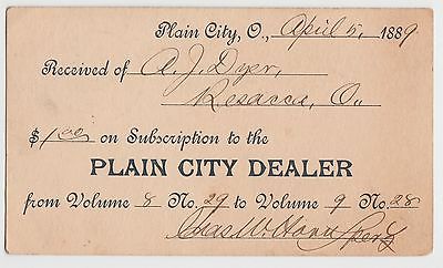 Ohio Postcard 1889 PLAIN CITY DEALER Newspaper London Madison County
